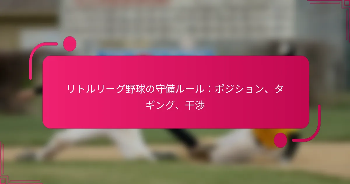 リトルリーグ野球では、守備ルールを理解することが効果的なゲームプレイに不可欠です。ピッチャー、キャッチャー、内野手、外野手といった主要なポジションには、それぞれチームの守備に貢献する特定の責任があります。さらに、タギング技術を習得し、干渉を認識することは、ゲームの結果に大きな影響を与え、公正なプレイと戦略的な優位性を確保することができます。