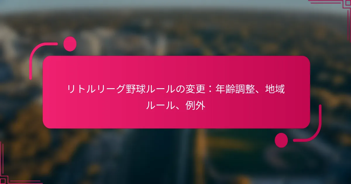 リトルリーグ野球における年齢調整、ローカルルール、例外は、選手の資格や参加に大きな影響を与えます。これらの要素がどのように相互作用するかを理解することは、コーチ、親、選手がリーグを効果的にナビゲートするために重要です。